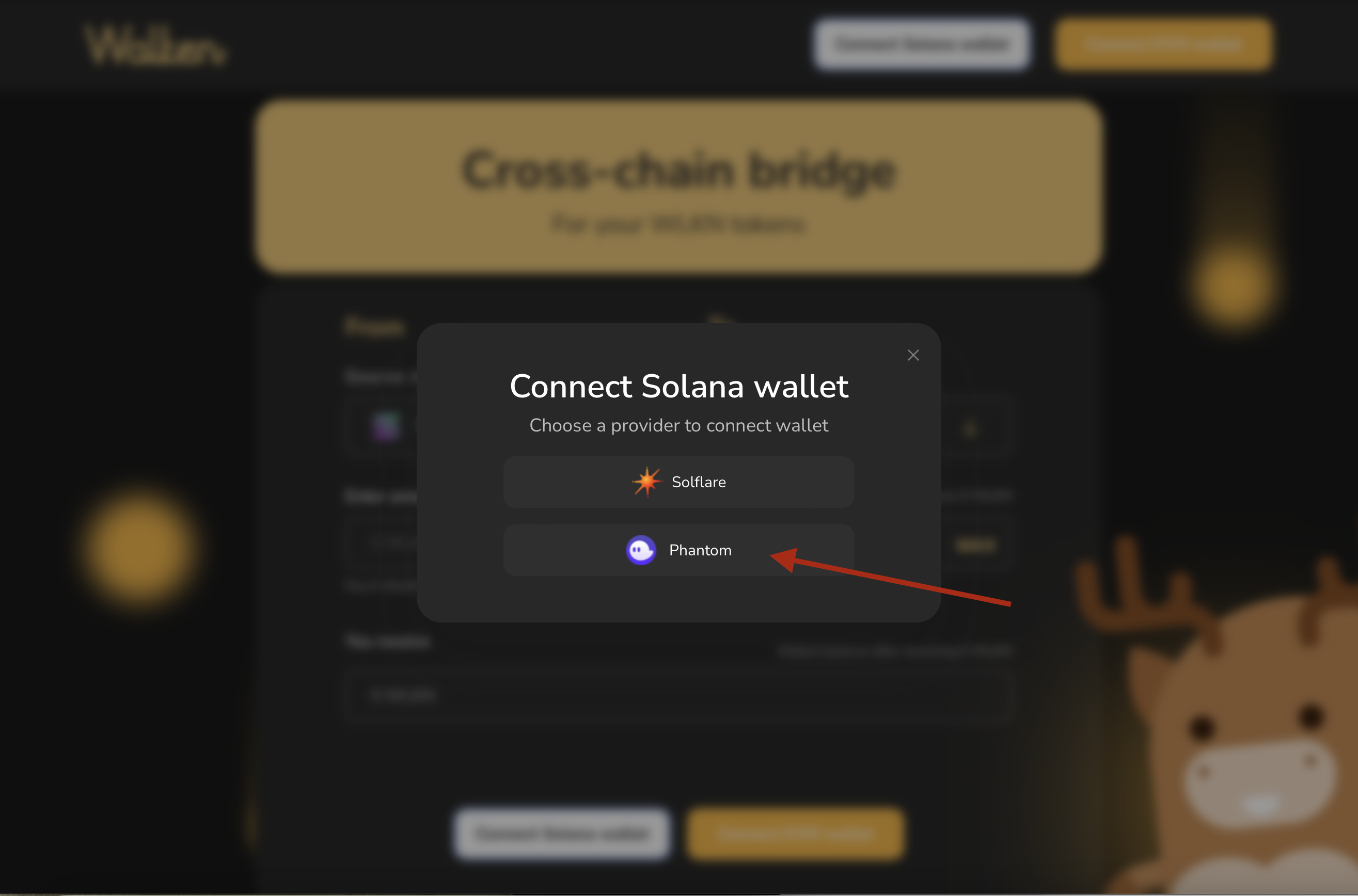 Since the bridge is only *available on desktop*, you'll need a Phantom wallet web extension and to restore your Solana wallet. The same goes for MetaMask and EVM wallet.