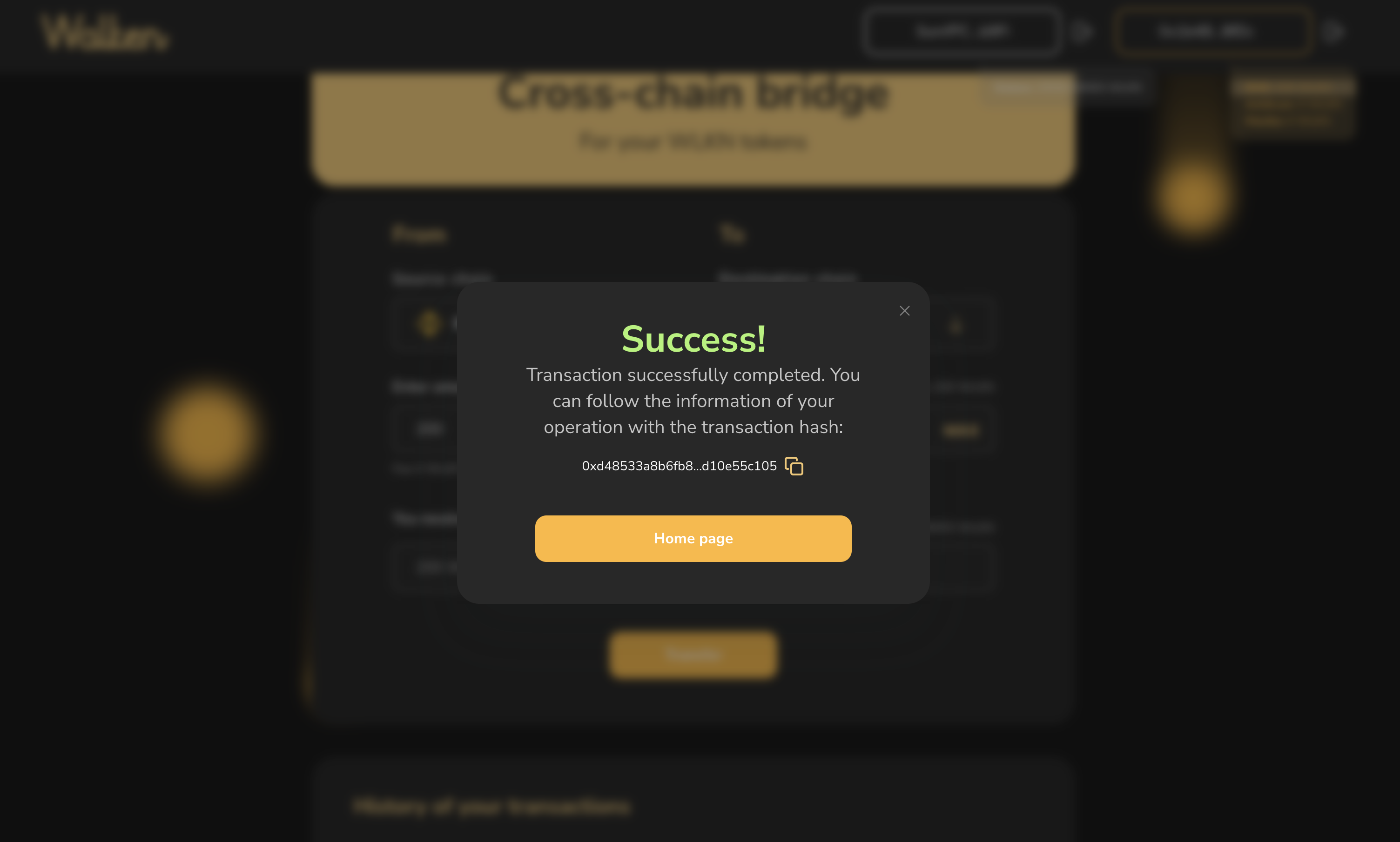 That's it, you've claimed your WLKN on BSC! The tokens will safely arrive at your BSC-wallet *within a short time* and you'll see them on <https://bscscan.com/> (but mind that it may take some time to transfer the tokens).